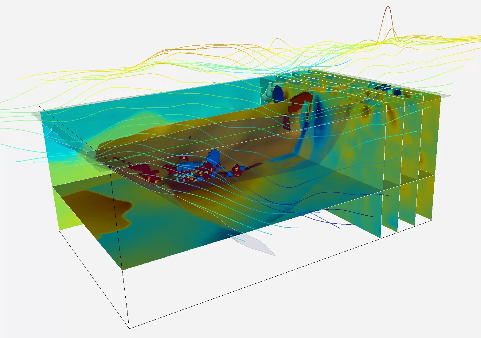 - User-defined restricted view of open data (points, lines, surfaces, volumes etc.) in 3D camera window rendered to probe surface; includes 3-property co-rendering.